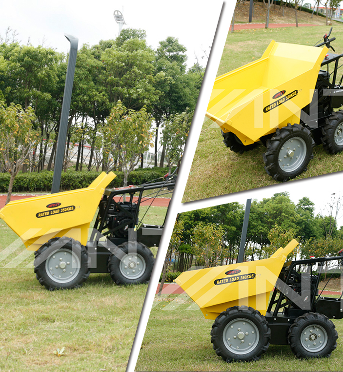 This model mini dumper is mechanical design and 4 wheels driven. The max loading weight is 350kg and the wide is 78cm,. It’s main feature is automation turning. It’s powerful for tough outdoors sites. Carrying bricks, sand stones, wood, crops, fruits around various sites.